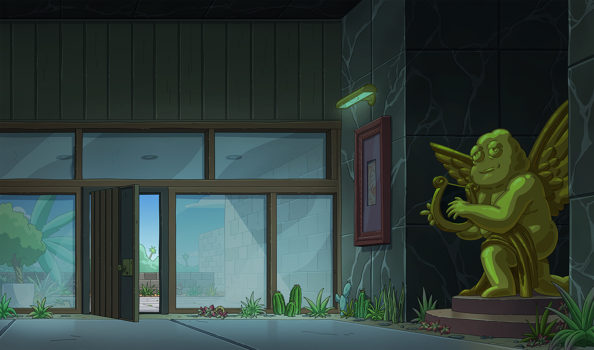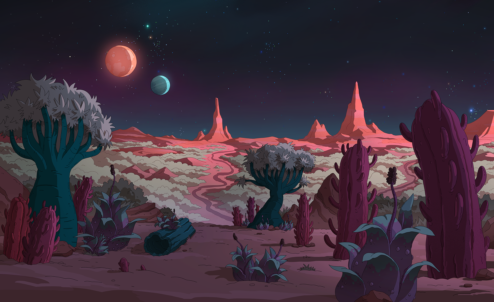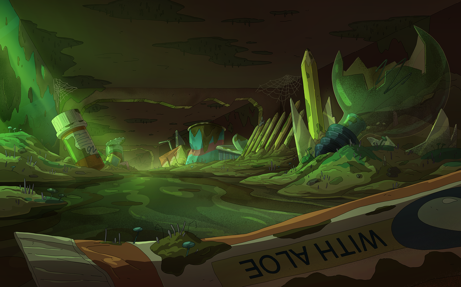 Background Paintings done for Season 3 of Solar Opposites Art Direction by Young Ji Cha Color Supervision by Susan Yung Layouts drawn by Arlan Jewell, Bailey Cooper, Heather Ashlyn Collins, Jay Quercia, Michael Brennan, Monica Smith, and Steven Hai