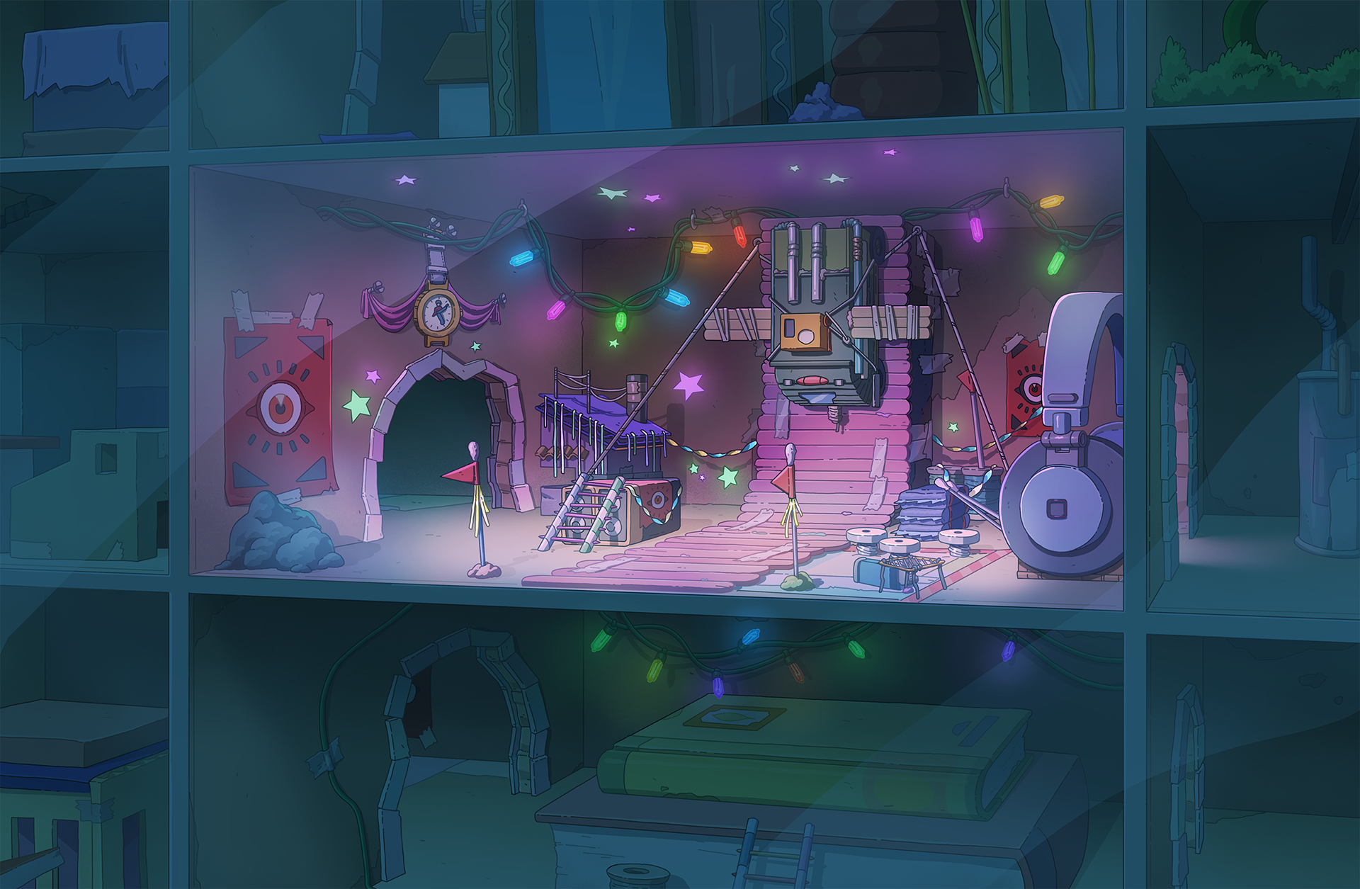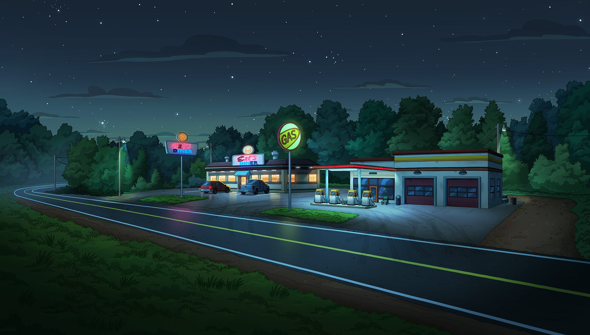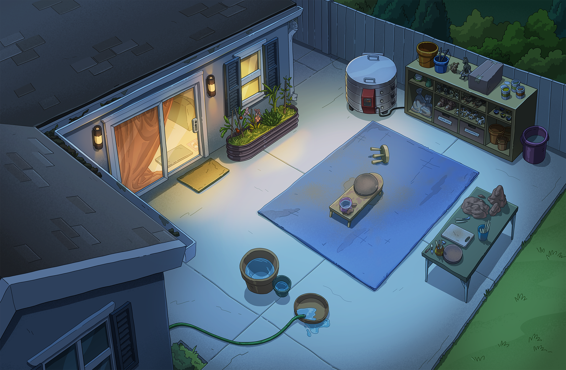 Background Paintings done for Season 3 of Solar Opposites Art Direction by Young Ji Cha Color Supervision by Susan Yung Layouts drawn by Arlan Jewell, Bailey Cooper, Heather Ashlyn Collins, Jay Quercia, Michael Brennan, Monica Smith, and Steven Hai